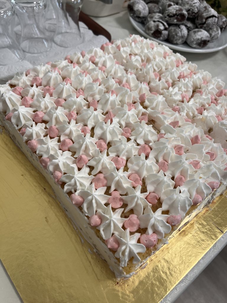 Çok güzel bir sebeple ortaya çıkan ve çok da beğeni alan bir pasta oldu. Kişi sayısı 30 ve üzerinde olacağı için kare şekilde tasarladığım pasta sade pandispnya ve beyaz çikolatalı bir krema ile bunlara zıt bir hafif ekşi dokunuş vermek amacıyla vişneli ara katmandan oluştu.