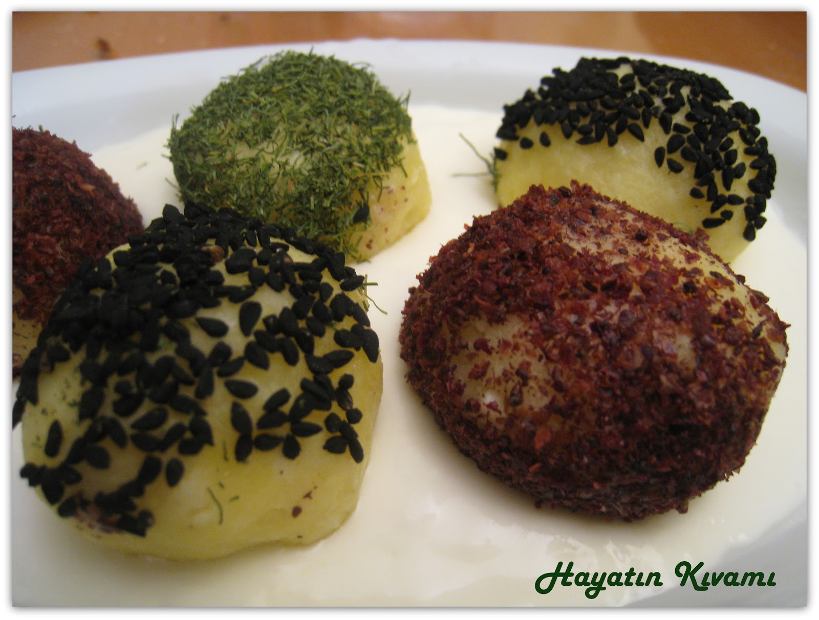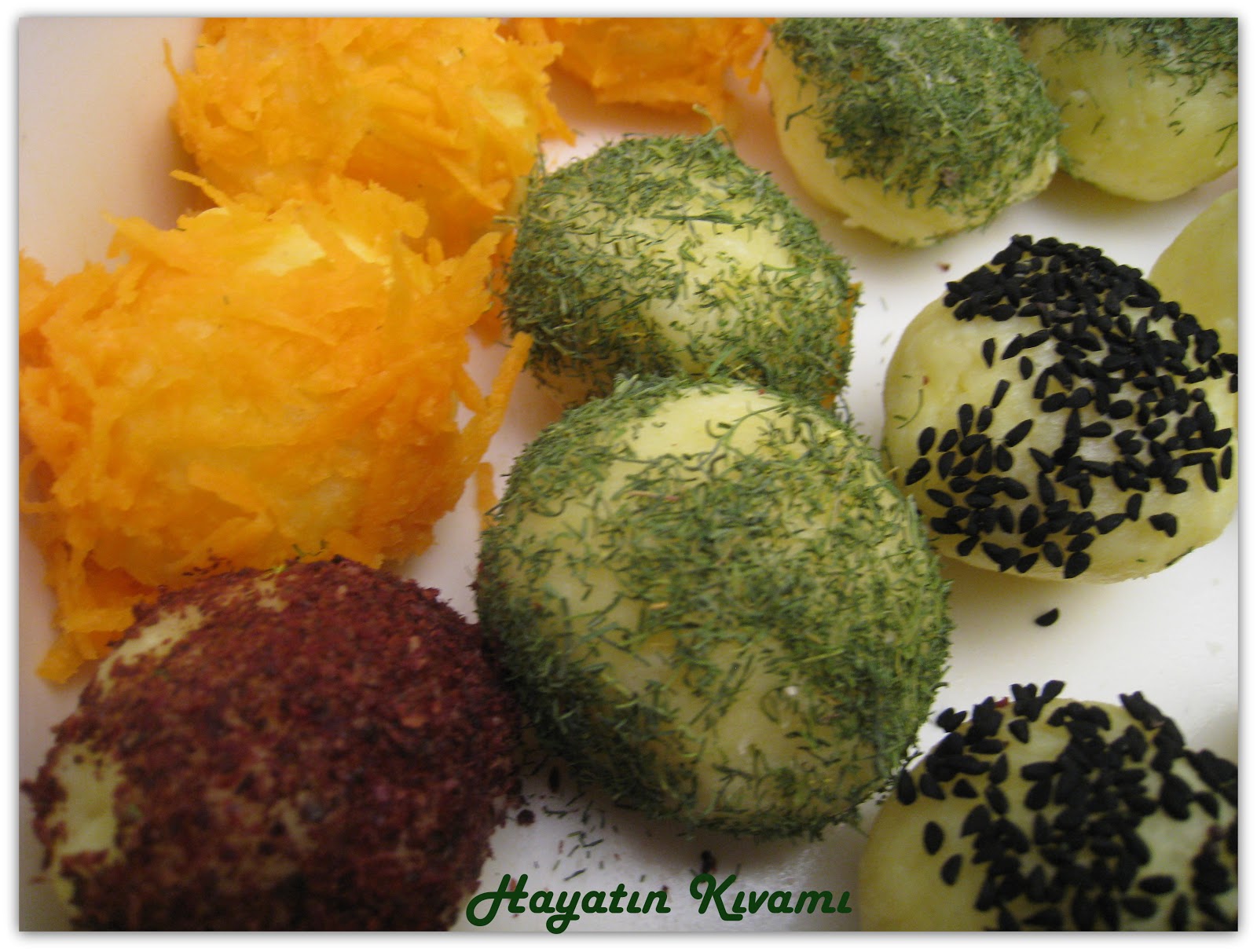 - Toplar hazırlandıktan sonra ince rendelenmiş havuca, sumağa, çörek otuna ve dereotuna bulanarak hazırlanır.