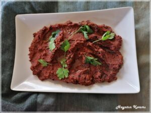 - Közlenmiş ve soyulmuş patlıcanları blendrda kıyın.