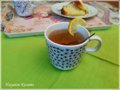 • Sıra geldi çayımızı içmeye. Ama daha malzemelerimiz bitmedi. Çayınızı süzerek fincanınıza alın, şeker yerine tatlandırmak için 1 tatlı kaşığı bal koyun. Ekşi sevmenizin derecesine göre de birkaç damla limon damlatın ve şifa niyetiyle çayınızı için. Yanına da dün yaptığımız limonlu kekten koyabilirsiniz.