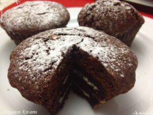 - Yine bu karışıma elenmiş un, kakao, vanilya ve kabartma tozu eklenir, çırpılır.