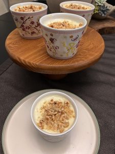 - Piştikten sonra her bir kasenin dibine birer tane yerleştirin ve üzerine dövülmüş ceviz serpin.