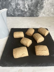 - Oda ısısında yumuşamış margarin, vanilya, pudra şekeri ve unu kontrollü ekleyerek yoğurun.