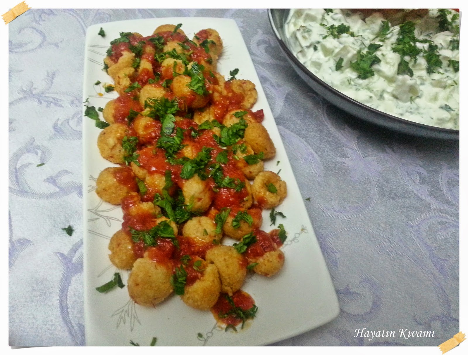 • Tamamen yoğrulmuş karışımdan küçük köfteler yapılır. İdeali fındıktan biraz büyük, cevizden küçük köfteler yapmanızdır.  Köfteler yapılırken yanınızda bulundurduğunuz su ile ellerinizi ıslatmanız gerekir. Yuvarlanan köftelerin ortasına parmağın ucuyla dokunularak oyuk yapılır.