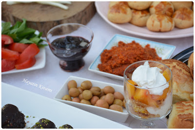 İzinler, yoğun çalışmalar drken nihayet dostlarıma hazırladığım kahvaltı sofrası ile yine blogger dünyasına geri dönmüş bulunmaktayım. Sofranın en ilgi çeken tarifi ile de karşınızdayım. Tatilde eğer kilo aldıysanız bu meyve salatası tam size göre olacaktır. Kalorisi çok az ve tadı da mükemmel. Hali hazırda çok çeşitli meyveler varken hemen yemek sonrasındaki tatlı açlığınız için yapıverin. Malzemeleri de öyle fazla değil. Buyurun tarife…