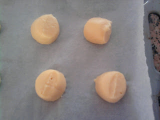 - Hamurdan yemek kaşığı ile ceviz büyüklüğünde parçalar alıp pişirme kağıdı serilmiş tepsiye koyuyoruz. Ben krema sıkma torbasının ucuna hiçbir şey takmadan, geniş bir şekilde sıkıyorum. Çok daha düzgün oluyor. Bu ölçü ile 24 tane profiterolümüz oldu.