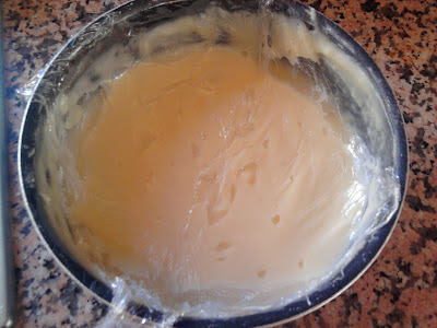 - Muhallebi ılınınca vanilya ve tereyağı konularak mikserle çırpılır, yeniden streç film kapatılarak pastanın yapımına geçilir.