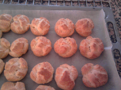 - Sonra fırından çıkarıp soğumuş olan kremayı içine yine krema torbası ile dolduruyoruz.