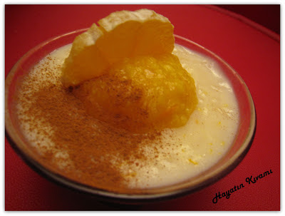 Hafif bir tatlı. Bandumanın arkasından yenileceği için ağır birşey olmasın diye sütlacı seçtim. Süslemek için de portakalı kullandım.