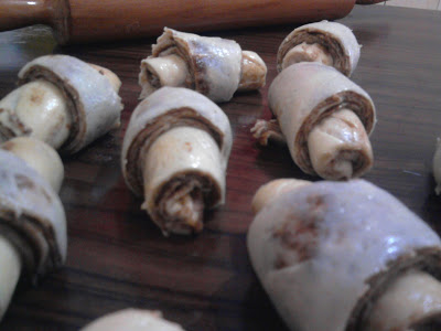• Açılan hamur üçgen şeklinde 12 parçaya bölünür, geniş tarafından doğru başlanarak sigara böreği gibi sarılır ve tepsiye yerleştirilir.
