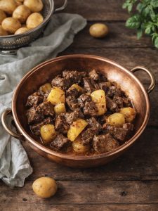 • İlk önce kuşbaşı doğranmış dana etleri çok az yağlanmış bir tavada suyunu çekene kadar çevrildikten sonra düdüklü tencereye konularak ve üzerine kaynamış su ilave edilerek pişirildi.