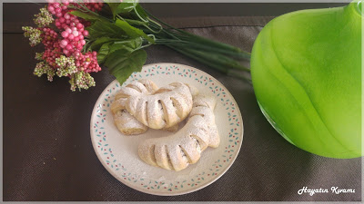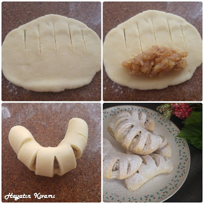 • İç malzemesi konularak ay çöreği yapar gibi yuvarlanan hamur ay şekli verilerek yağlanmış tepsiye yerleştirilir.