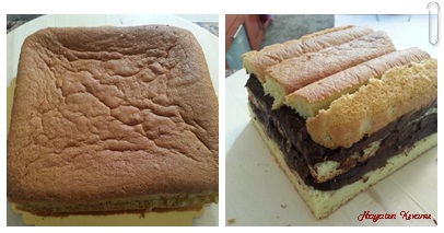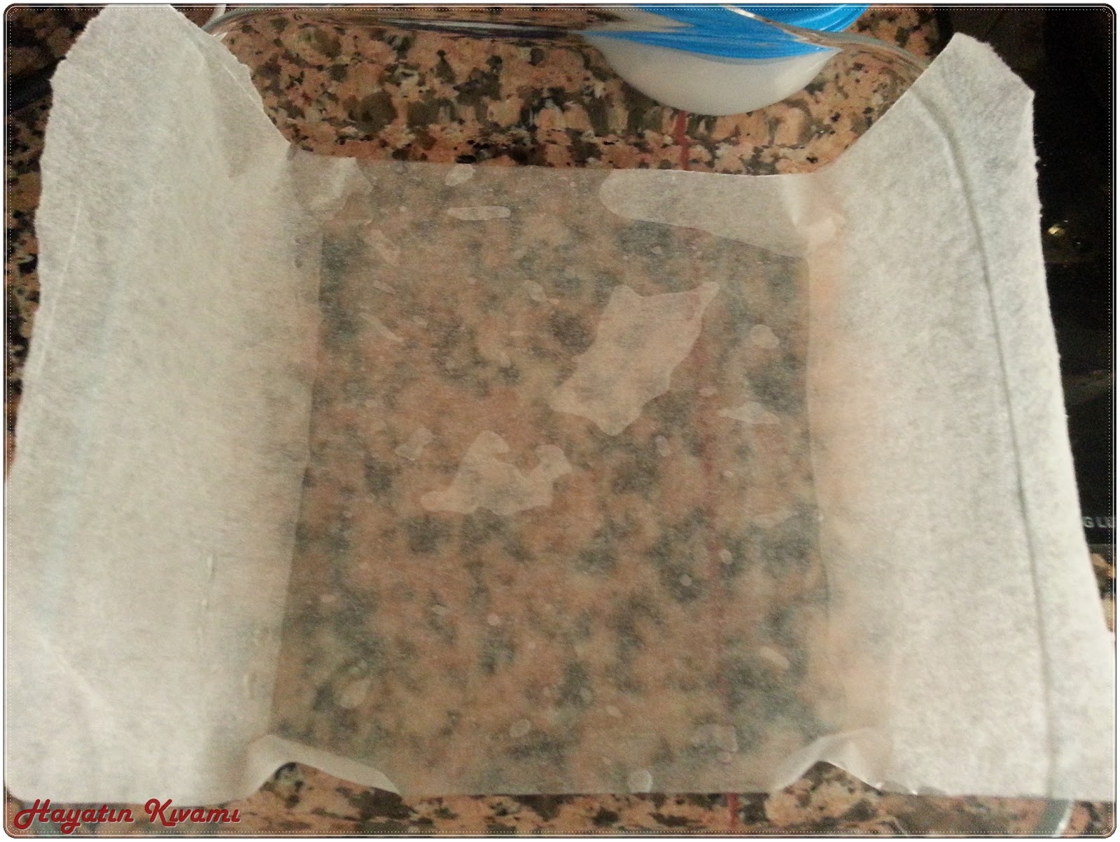 Pandispanyaları tarifteki gibi hazırladım. 20*20 cm.lik borcam kullandım. Borcamdan çıkması zor olmasın diye altına pişirme kağıdı serdim.
