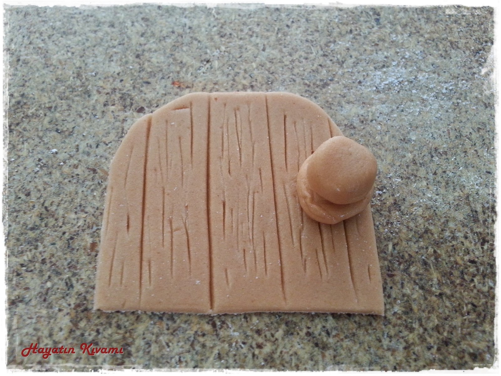 Evin kapısını kahverengiden yaptım. Üzerine ahşap görünümü verdim. Aynı şekilde pencerenin kepenklerini de yaptım.