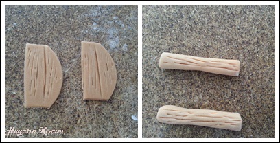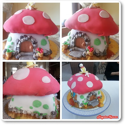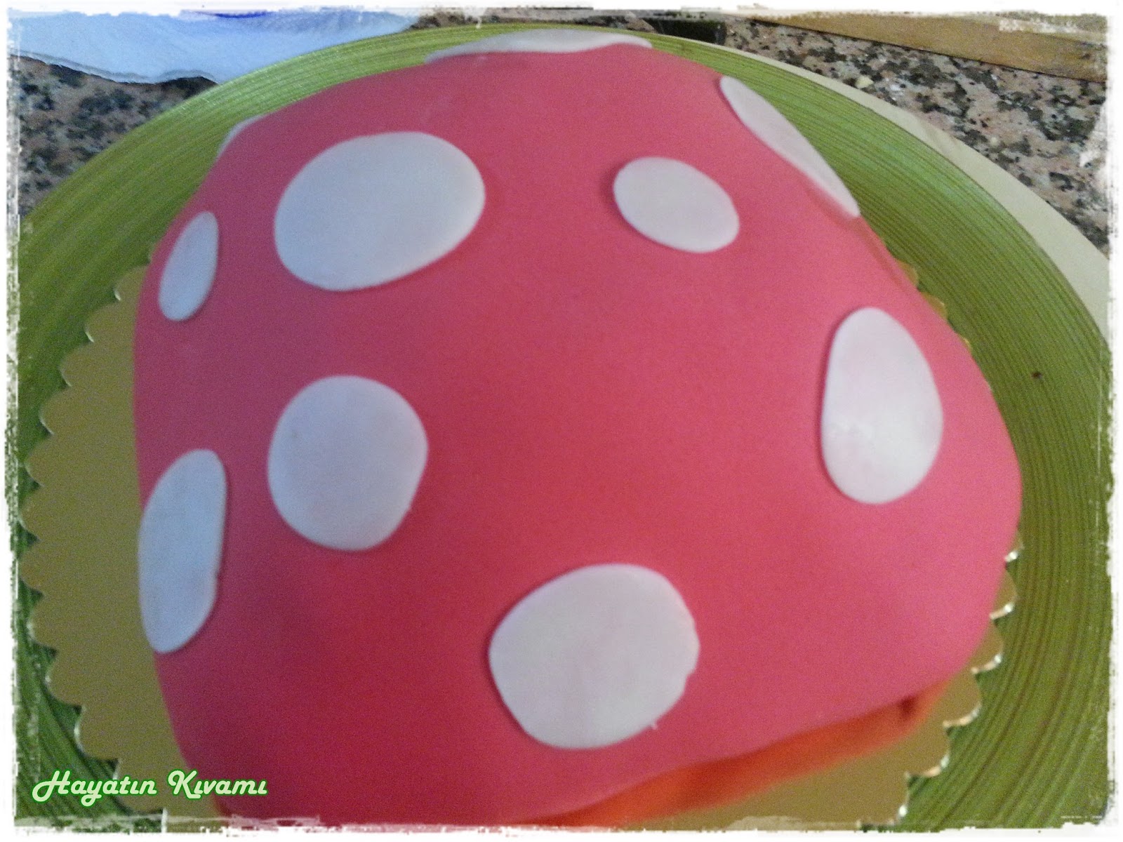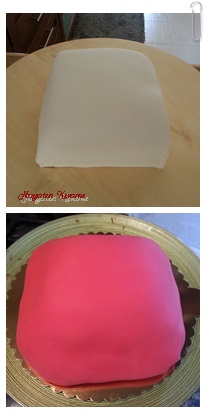 Ertesi gün ilk işim her iki parçayı şeker hamuru ile kaplamak oldu. Alt katı beyazla üst katı ise kırmızı ila kapladım. Sonra sıra geldi küçük parçaları yapmaya.