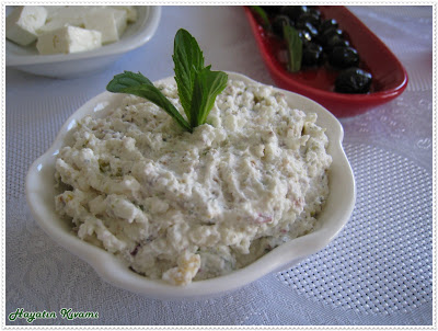 • Kuru yemişleri irice dövün. Baharatla birlikte peynirlere katın. Servis tabağına alın.