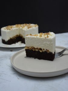 - Pasta üzerinin kreması için krema ısıtılır, ocağın altı kapatılıp parçalanmış çikolatalar konulur ve karıştırılarak eritilir. Bir kenarda soğuması için beklenir. Arada bir karıştırılarak kabuk bağlaması engellenir.
