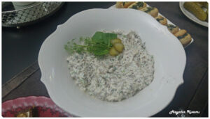 - Tuz, zeytinyağı, 1 yemek kaşığı sirke ve yarım limon suyu konularak karıştırıldıktan sonra servis edilir.