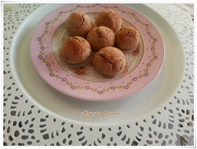 - Dinlenmiş hamurdan ceviz büyüklüğünde parçalar koparılarak yuvarlanır ve yağlanmış tepsiye dizilir. 15-20 dakika kadar pişirilir. Soğuduktan sonra üzerine tarçın serpilerek servis edilir.