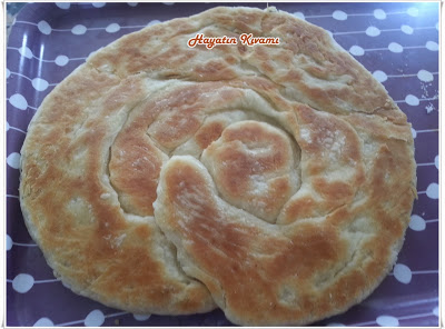 - Mayalanan hamurdan portakal büyüklüğünde parçalar koparılır. Merdane ile açılıp inceltilir. Arasına tahin sürülür, arzuya göre biraz toz şeker serpilir. Hamur yuvarlanarak rulo yapılır. Kendi etrafında spiral gibi sarılıp merdaneyle bir kez daha üzerinden yuvarlanır.
