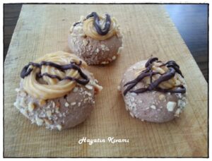 • Üzerine 3-4 tane damla çikolata saplanır ve önceden ısıtılmış 175 derece fırında 20 dakika kadar pişirilir.