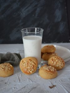 • Önce nişasta eklenip yoğurulmaya başlanır. Un yavaş yavaş ilave edilir. Hamur yumuşak ve ele yapışmayan kıvam alınca ceviz kadar parçalar koparılıp yuvarlanır ve yağlanmış tepsiye yerleştirilir.