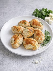• Dinlenen hamurdan ceviz büyüklüğünde parçalar koparıp çok ince olmayacak şekilde açın, içine beyaz peynir koyup kapatın.