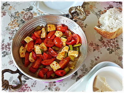 Bugün de bir kahvaltı tarifi verelim. Domatesler iyice lezzetlendi. Değerlendirme zamanı. Burada kullanacağınız peynirin de sert bir peynir olması lazım ki pişirirken dağılmasın. Hellim de kullanabilirsiniz, ya da benim gibi köy peyniri kızartabilirsiniz.