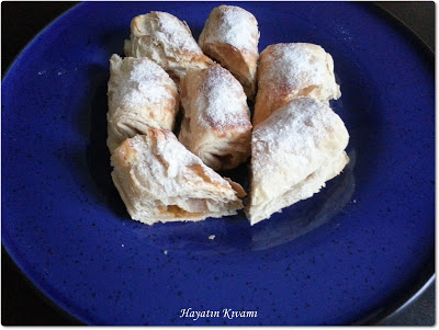 - Pişen tatlılar soğuyunca her birini ortasından verev şeklinde kesin ve üzerine pudra şekeri serperek servis edin.
