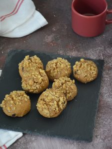 - Fındık büyüklüğünde parçalar koparıp ortasına bir fındık koyup yuvarlayın ve pişirme kağıdı serili tepsiye aralıklı olarak yerleştirin.