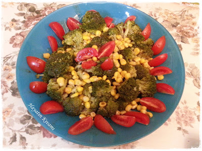 - Brokoli haşlanıp suyu süzülür. İstenilen büyüklükte parçalanıp tabağa yerleştirilir.