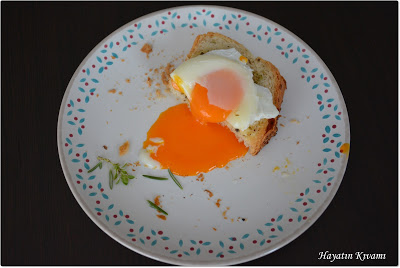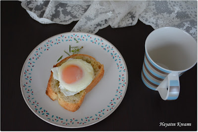 Tarif tamamen benim görselim ve damak zevkime göre ortaya çıktı. Yumurta işi koay, çılbır yapar gibi suda haşlanacak. Ama altındaki ekmeğin hem lezzetli olarak kızarması, hem de üzerindeki yumurta ile birlikte yenebilmesi için biraz da sert olmaması gerekiyordu. Şu yeni moda kapaklı tavalar işimi gördü. Üzerine sürdüğüm zeytinyağı ve baharatlarla tatlandı ve çok güzel bir şekilde kızardı. Bakalım siz de beğenecek misiniz…