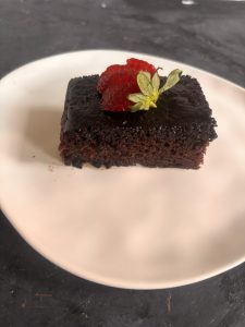 - Küçük, yağlanmış bir brownie kabına dökülüp önceden ısıtılmış 175 derece fırında pişirilir.