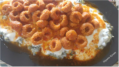 - Servis tabağına önce yoğurtlu ıspanak konur. Üzerine bulgur köfteleri eklenir. Tereyağlı pul biberle sos yapılıp dökülür.