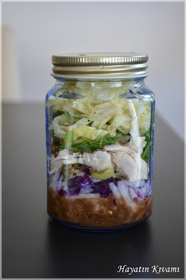 Diyet için ya da sağlıklı beslenmek için bir öğününüzü oldukça doyurucu ve her nesin maddesi içeren bir salata yapmaya ne dersiniz? Hatta birkaç kavanoz alıp hepsini değişik salatalarla doldurup buzdolabında bekletebilir ve her gün bir tanesini yanınıza alarak işteki öğlen öğünlerinizde bunu tüketebilirsiniz.