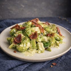 - Brüksel lahanasının dış yapraklarını temizleyip ortadan ikiye bölün.