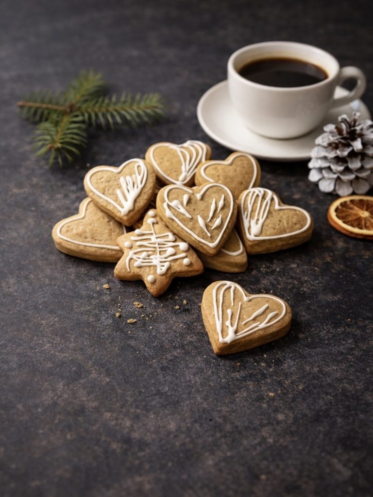 Kahve: Kurabiyeye ince bir derinlik ve aroma ekler. Özellikle baharatların lezzetini ortaya çıkarmak için güçlü bir yardımcıdır. Çözünebilir kahve tercih edebilir veya çok az miktarda demlenmiş filtre kahve kullanabilirsiniz.