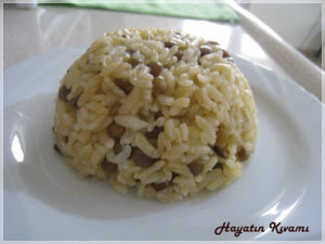 - 15 dakika sonra biraz yapış yapış ama suyunu epeyce çekmiş bir pilav halini alacaktır. Altı kapatılıpüzerine bez örtülerek demlenmeye bırakılır. 10-15 dakika sonra pilav demlenerek servise hazır hale gelecektir.
