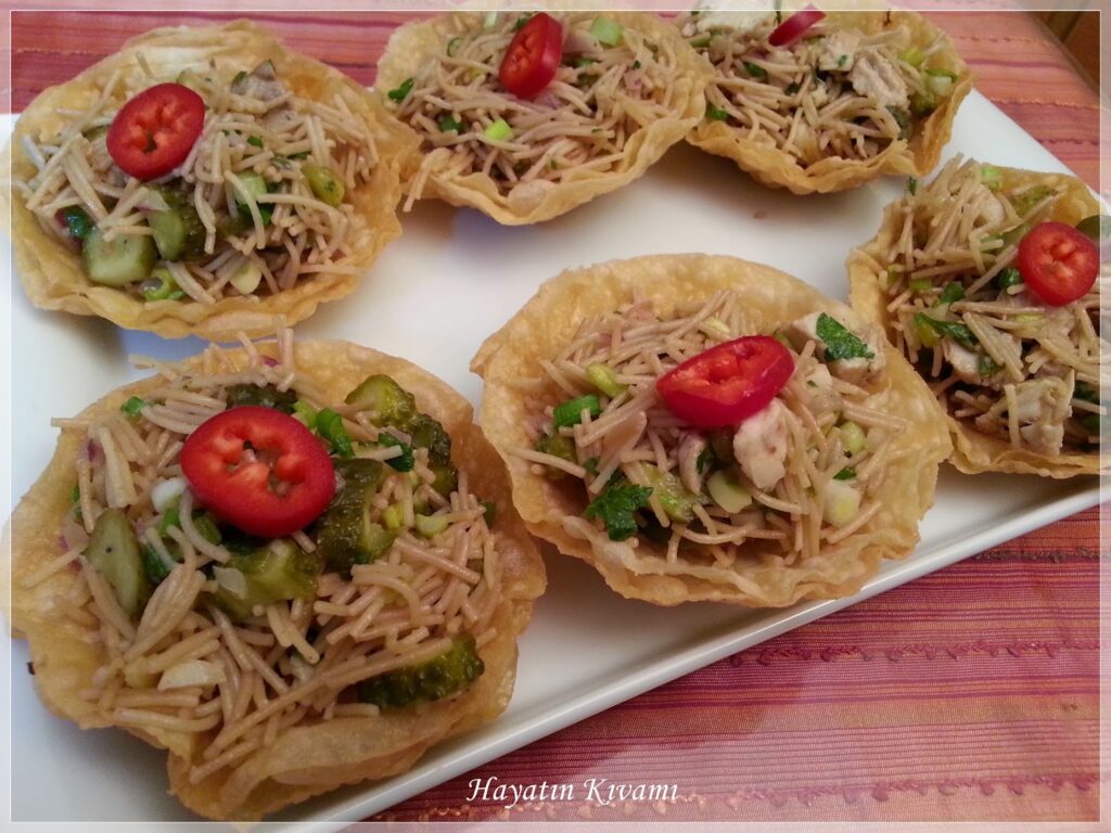 Bu sıralar değişik salata tarifleri vermeye devam ediyorum. Bu sefer de ana malzememiz nohut. Bu salatayı da yufka çanakları içinde sınmak güzel oluyor. Servis edeceğiniz …