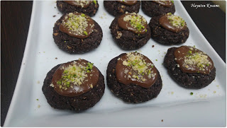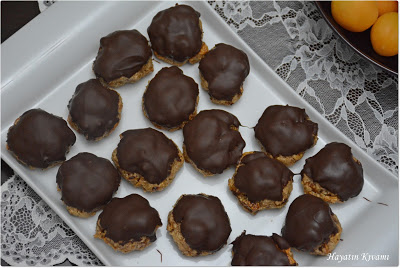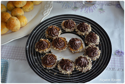 Mini tartlardan oluşan bir kurabiye. Ortasında bol çikolatalı bir ganajı var. Görüntüyü güzelleştirmek için de tartların kenarında çikolatalı fındık kırıkları mevcut.Biraz oyalayıcı bir tarif …