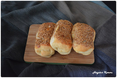 Mayalı bir poğaça ama bol susamı ile simidi andırıyor. Ben içine kaşarla sucuk koydum, siz dilediğiniz malzemeyi kullanabilirsiniz, hatta ufkunuzu geniş tutun ve kakaolu …